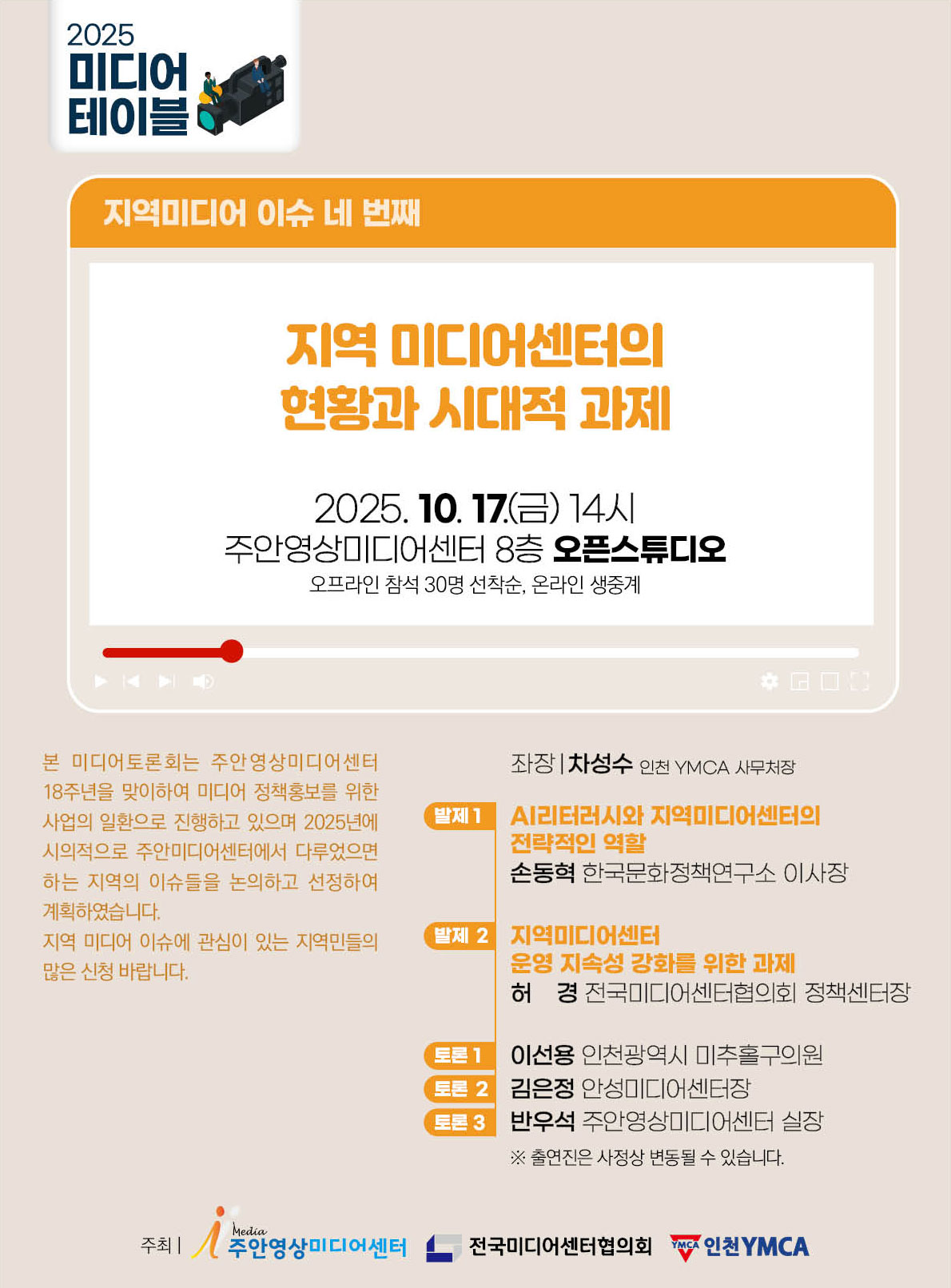 미추홀구 주안영상미디어센터, ‘미디어 테이블: 지역 미디어센터의 현황과 과제’ 개최해