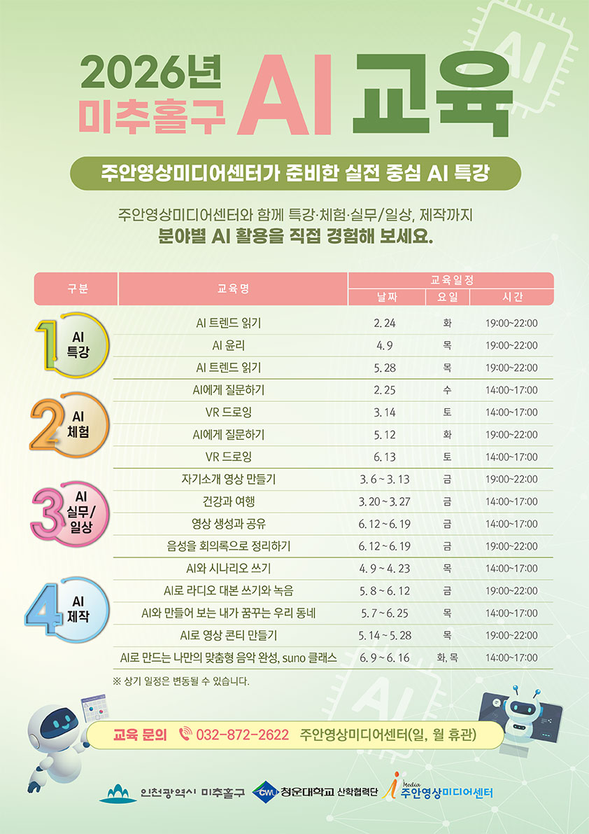 미추홀구 변화하는 디지털 환경 대응... 주안영상미디어센터, 주민 AI 활용 능력 키운다