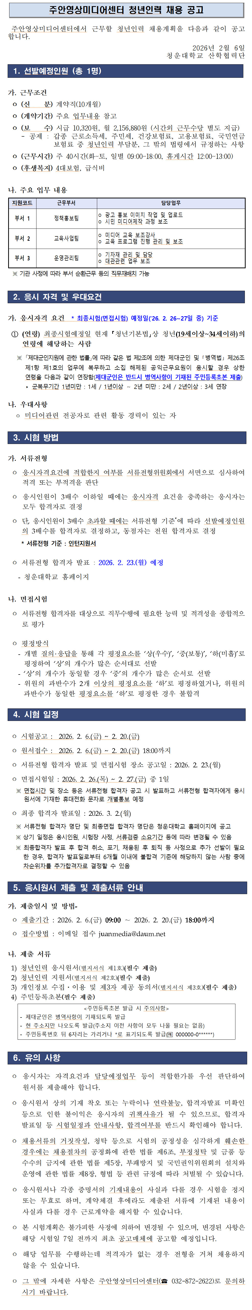 [채용공고] 주안영상미디어센터 청년인력 채용 공고