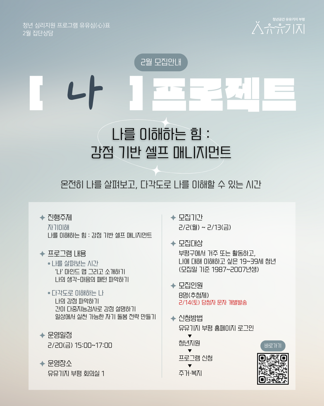 [홍보 협조] 청년공간 유유기지 부평 2026년 청년 심리 지원 프로그램 「유유심(心)표」2월 참여자 모집