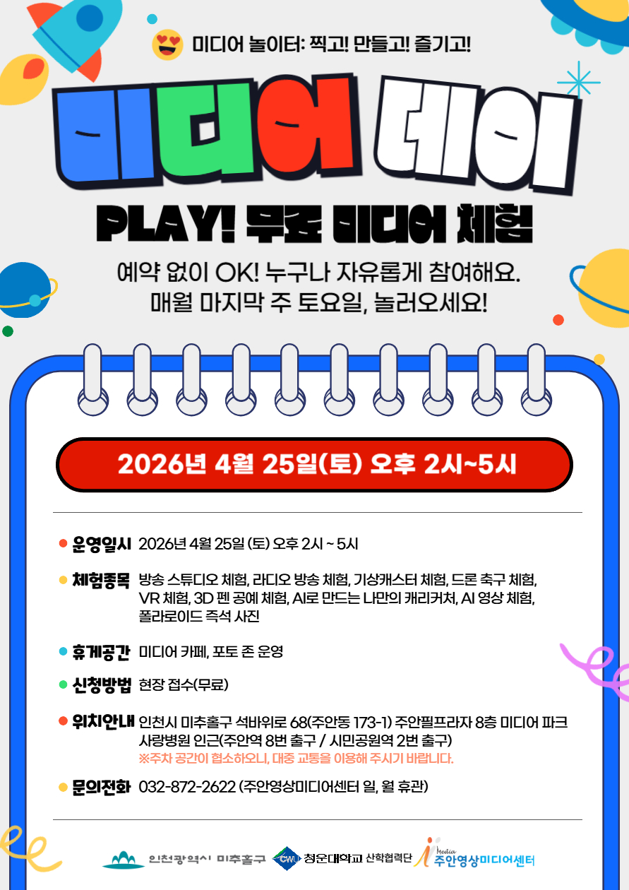 032-872-2622 (주안영상미디어센터 일, 월 휴관)
